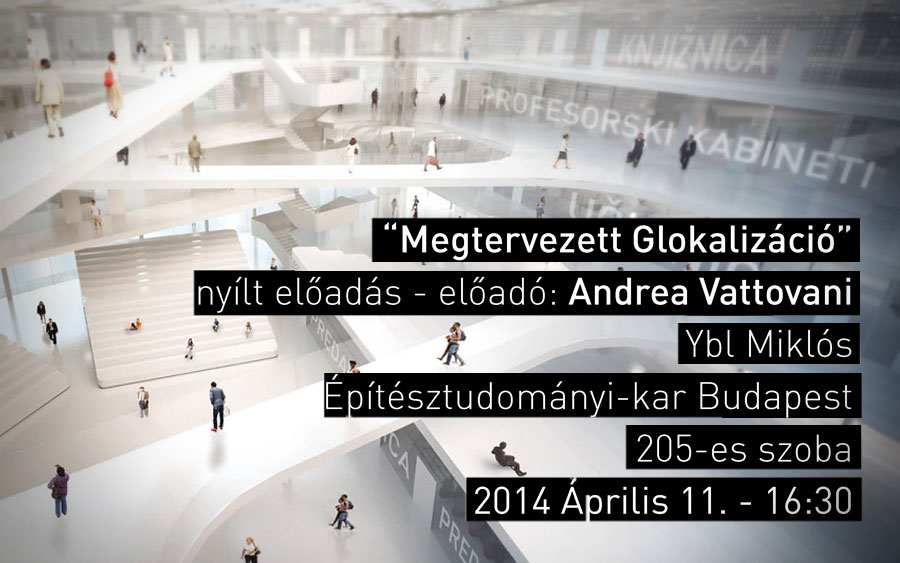Events, Teachings | April 2, 2014 | vatto Andrea Vattovani to give a lecture at the Ybl Miklos University in Budapest On April 11th 2014 at 4:30pm Andrea Vattovani is going to give a lecture at the Ybl Miklos Faculty of Architecture of Budapest about the latest projects and the “programmed glocalization”. Post navigation Older Newer Comments are closed.