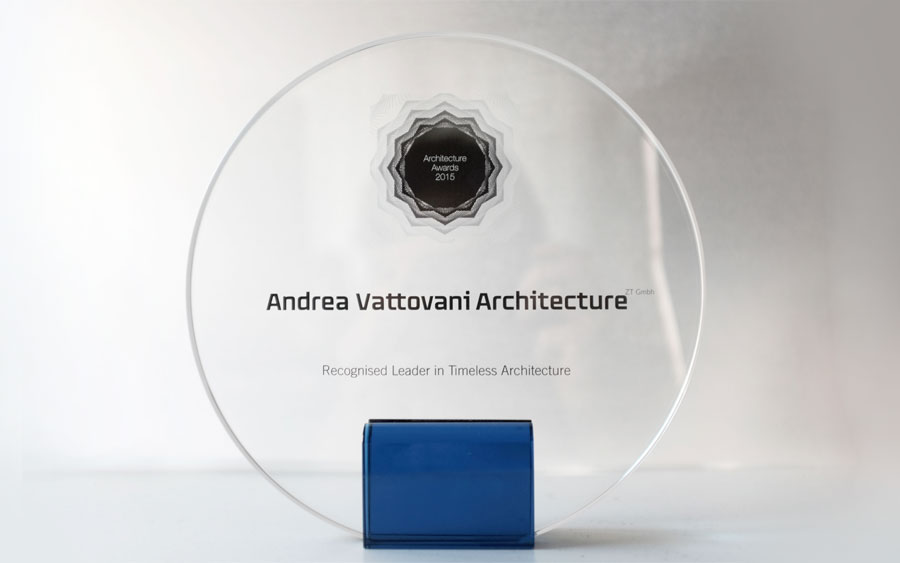 Andrea Vattovani Architecture was awarded as recognized leader in Timeless Architecture with the  Architecture Award 2015 from English magazine Build.