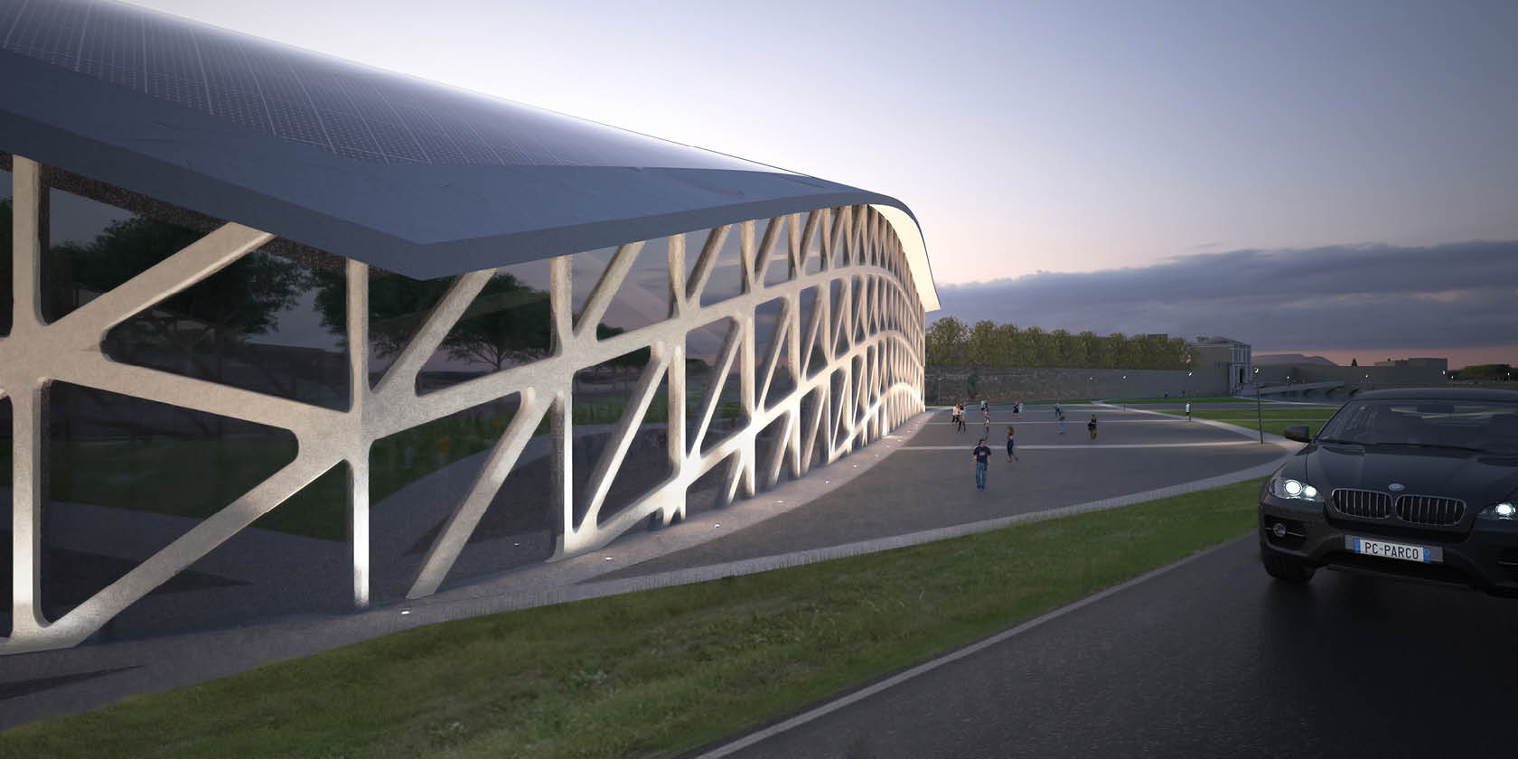 The operation involves the modernization of the buildings along approximately 1 km and a half, the thought is moving towards the future by learning from the past. The outer part of the park is inspired by the braided rivers, but without losing the sinuosity and the complicity between the two parts inside and outside, however the interior of the park is inspired by stone materials typical of all Italian cities. The inside is designed reassessment and reorganization of routes in a simple, modern but effective. The flooring and the green area is inspired by the diamond shape that is formed in the plots of our paths in the park, but this time, reinterpreted becoming so unique flooring. The resettlement pathways involves the creation of a pedestrian and bike path next to the wall, and then continue to a limited traffic zone. The flooring is designed not to encourage too high a speed, creating areas with limited traffic.