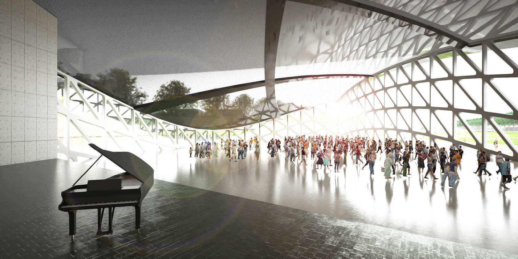The park is designed as a simple network of paths that weave become an element of recognition of the city, hard not to admire. The vegetation of the park is designed in order to stop this infinite length which made it very welcoming. For this purpose we adopt the tall trees that form the “small forest” can shelter from the sun and to feel enveloped and protected citizens. These “small forest” are illuminated in the evening, giving the park a romantic atmosphere. The vegetation Piacentina is integrated into these project such as: various species of willow shrubs, arborescent willow, white willow, the black alder, black poplar, white poplar, shrubs, oak, hornbeam, hardwood, oak associated, linden, elm , hornbeam which are alternated between the different areas. Also introduced are two trees in a green park can not be missed: the Chusan palm, to give the feeling of being on vacation by the sea and its resistance to low temperatures (resistant up to -15 °), and the Mediterranean cypress, for its elegance.