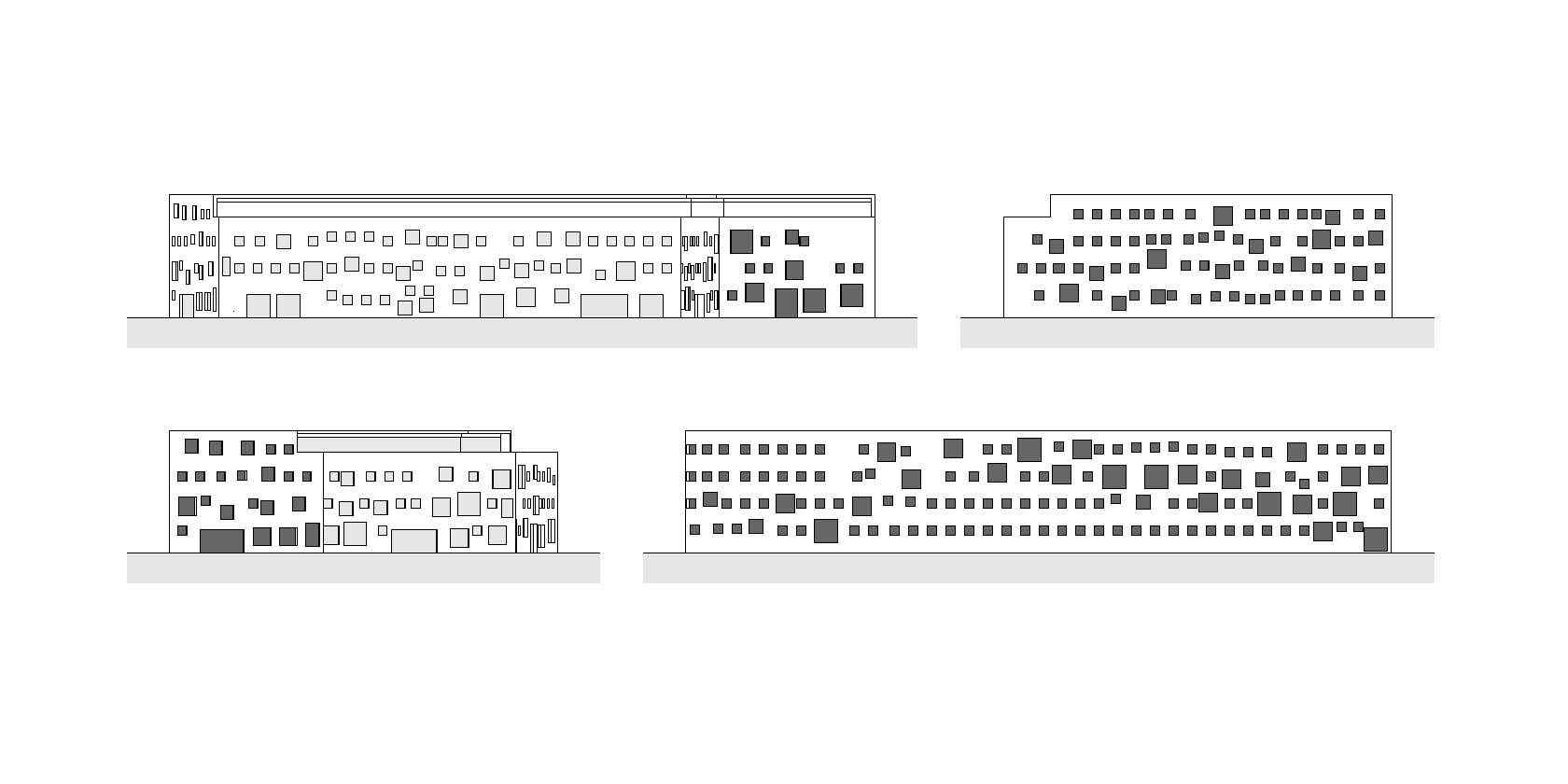 The formal design of the building can be traced back to the concept of an optimised window raster of the behind reclined functions. With the use of only four window dimensions this consideration is overlaid to the facade. The thereby formed pattern is pulled over the whole building and is continued on the square design.