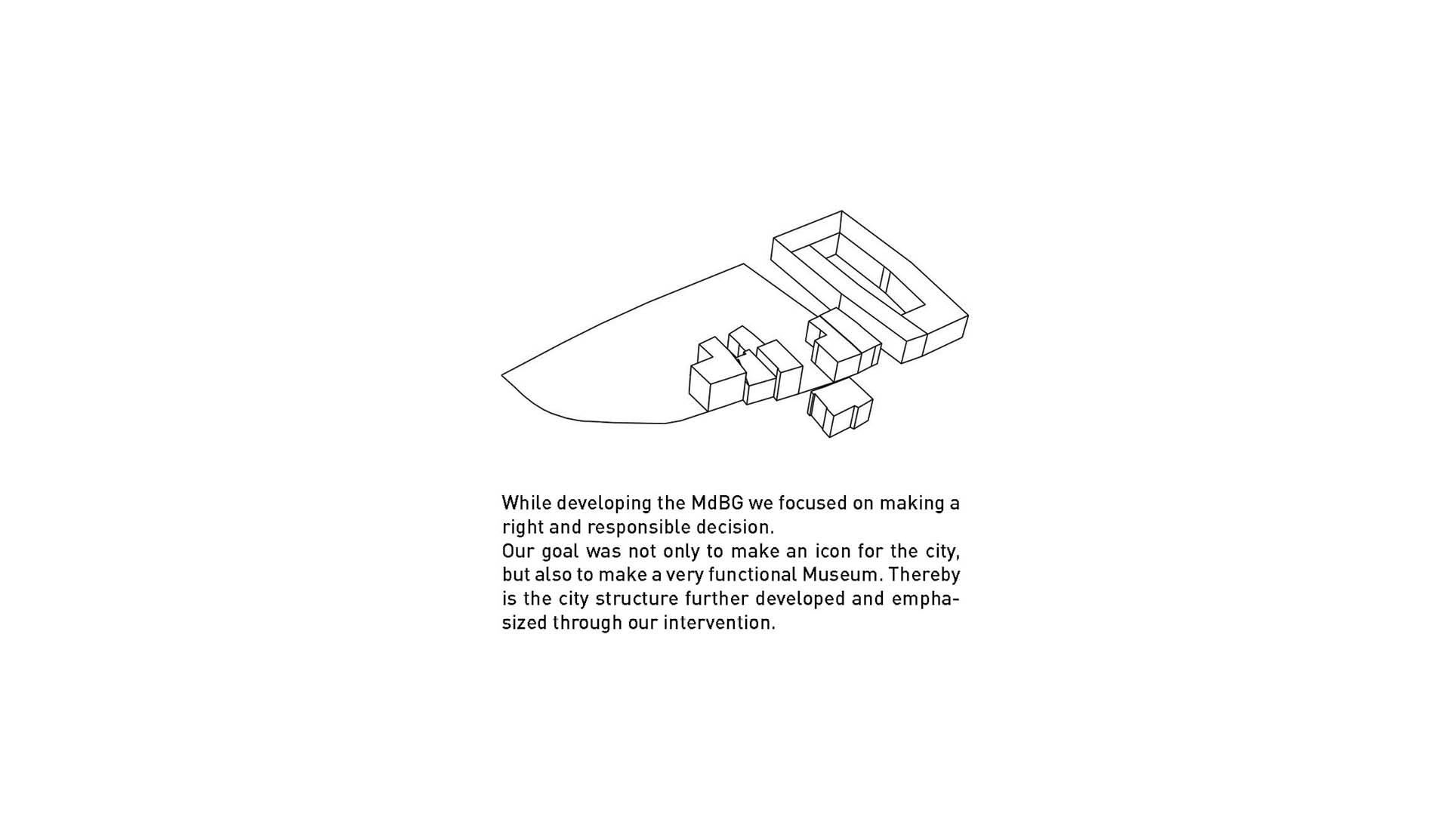 Our goal was not only to make an icon for the city, but also to make a very functional Museum. Thereby is the city structure further developed and emphasized through our intervention.