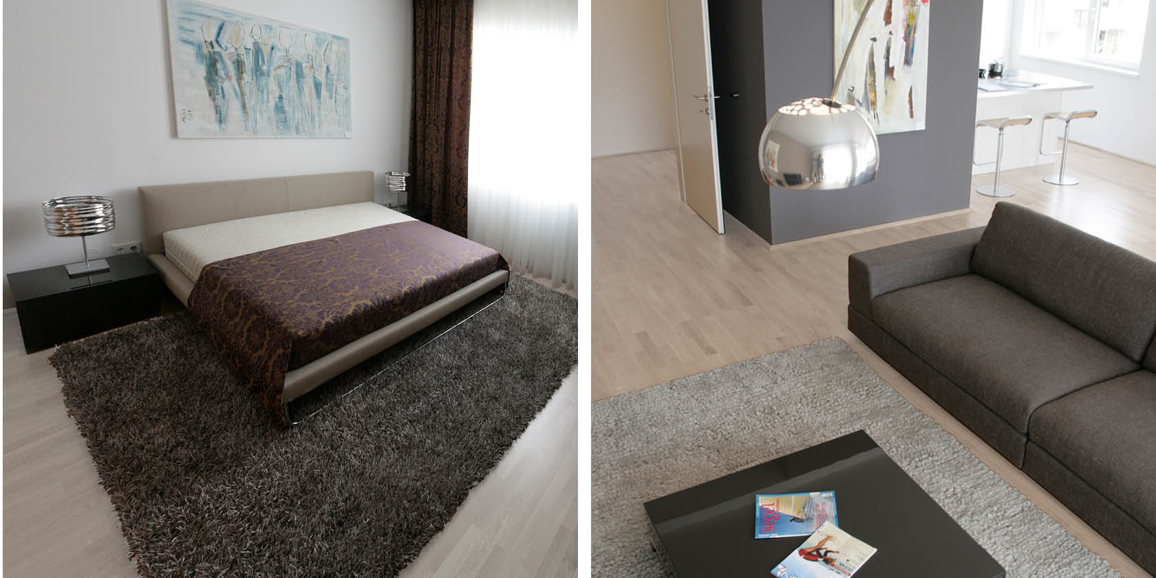 Mustang is actually a show room. The design for the interior was planned to be modern but at the same time to achieve a timeless style who could reach the taste of different people. The interior was made for an austrian real estate developer who wanted in one of his biggest investion, a flat/ show room to show to customers whom possibly could be interested in the project. The most difficult task was to develop a flat without an actual customer and obviosly that we had to use the standard layout and material.