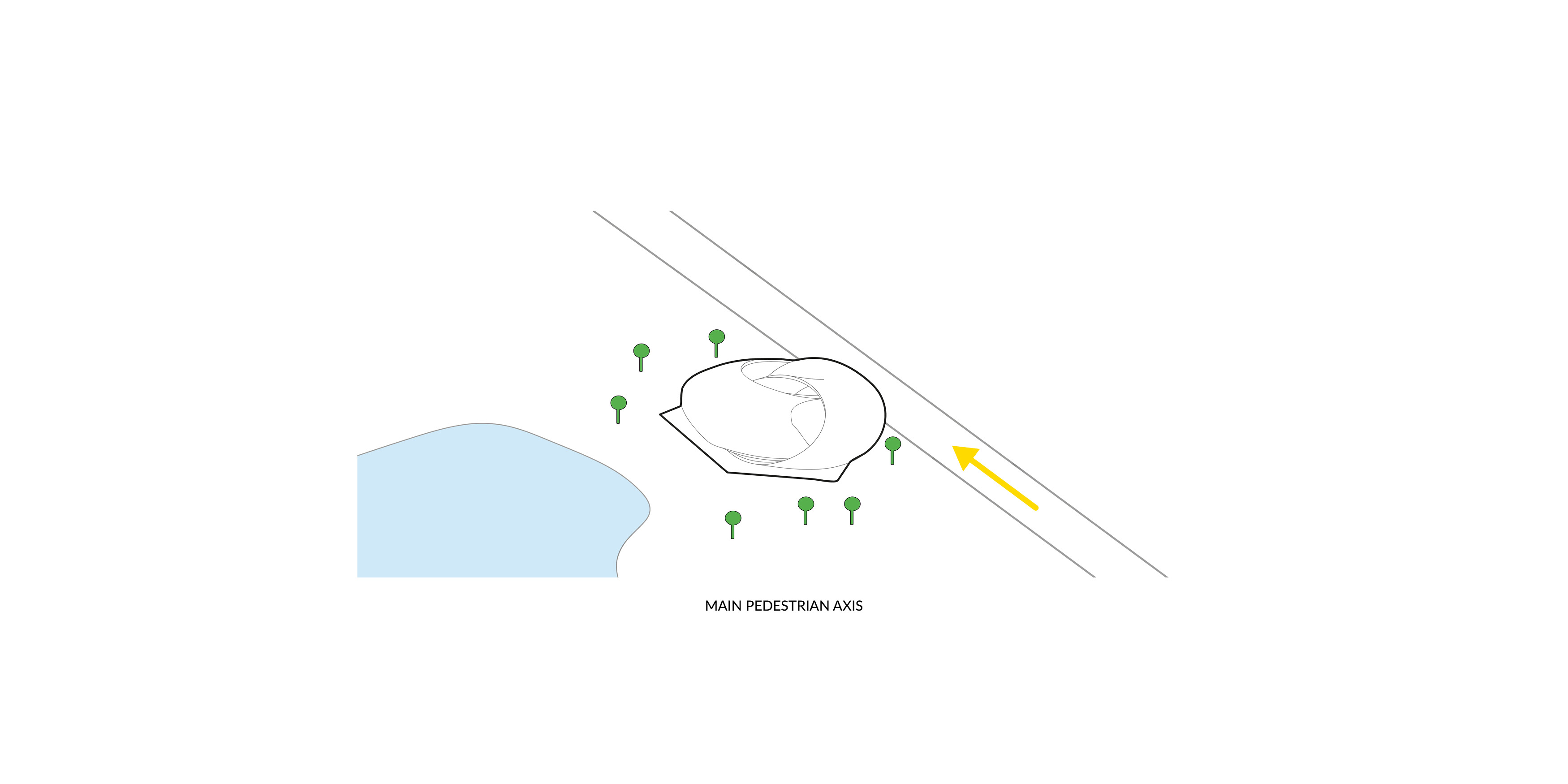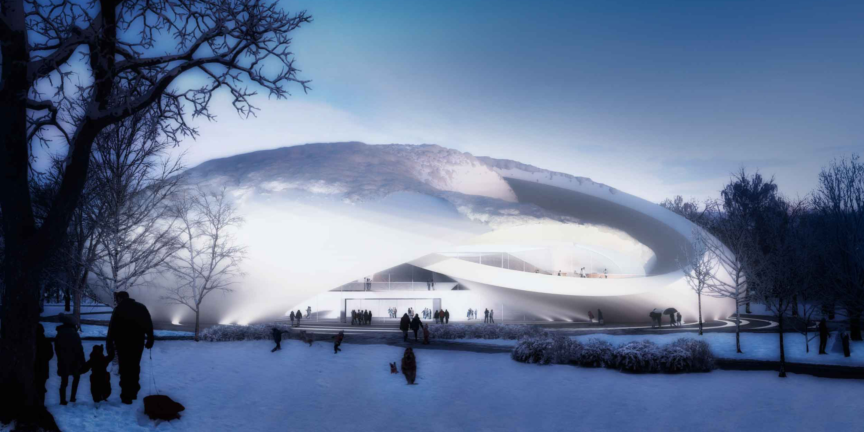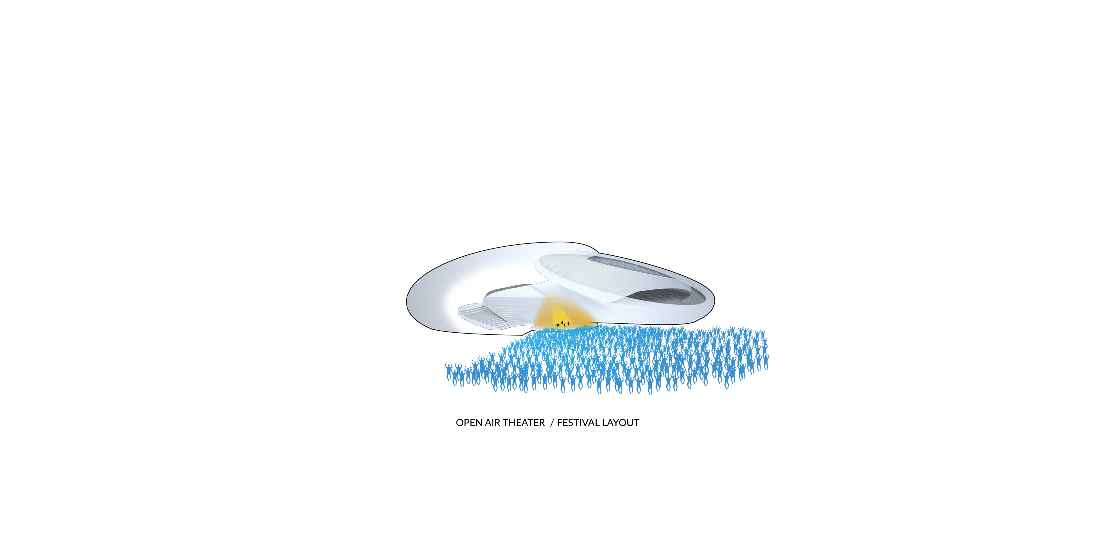 Our goal was to create something that has a strong identity and that could be seen as a sculpture standing in the middle of the park. We decided to make a building that simultaneously serves as a symbol, easily recognizable and unforgettable. A building that offers a lot of public space as well as providing an exciting interior. The organic form seems rather complex at a first glance, but through its complexity it offers various spatial experiences and gives the visitors the opportunity to discover the building from different angles and interact with music turned into “stone”.