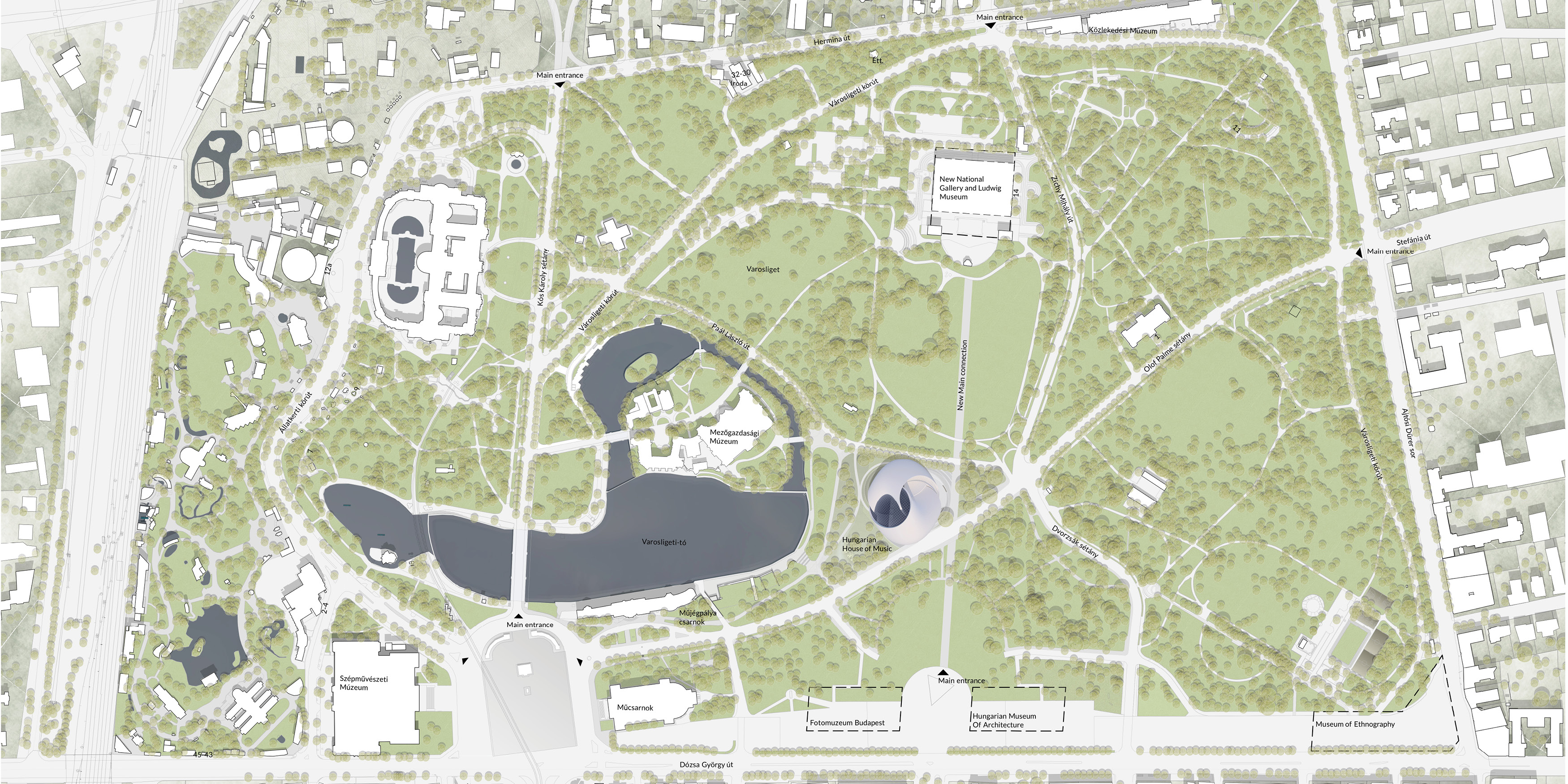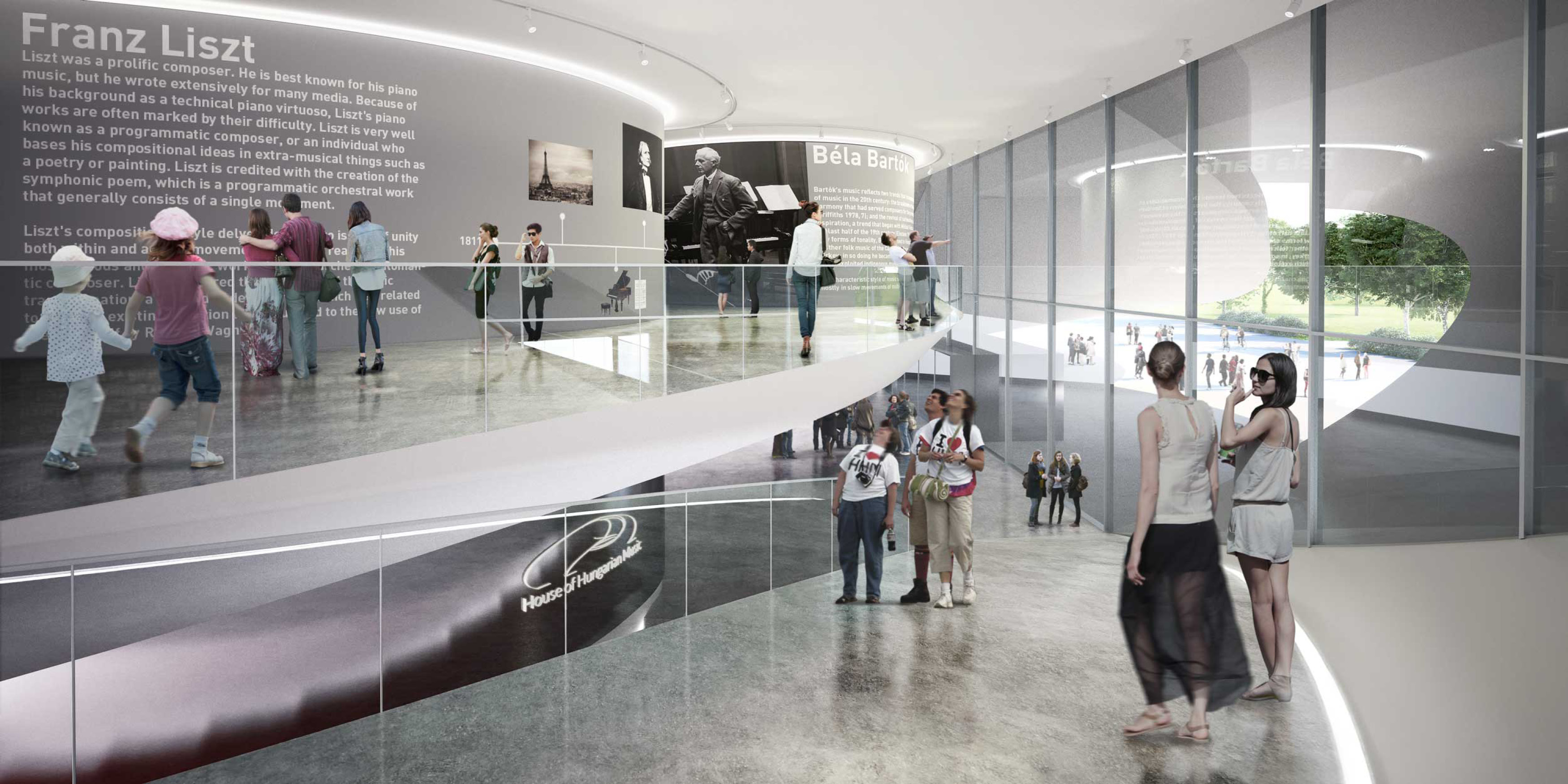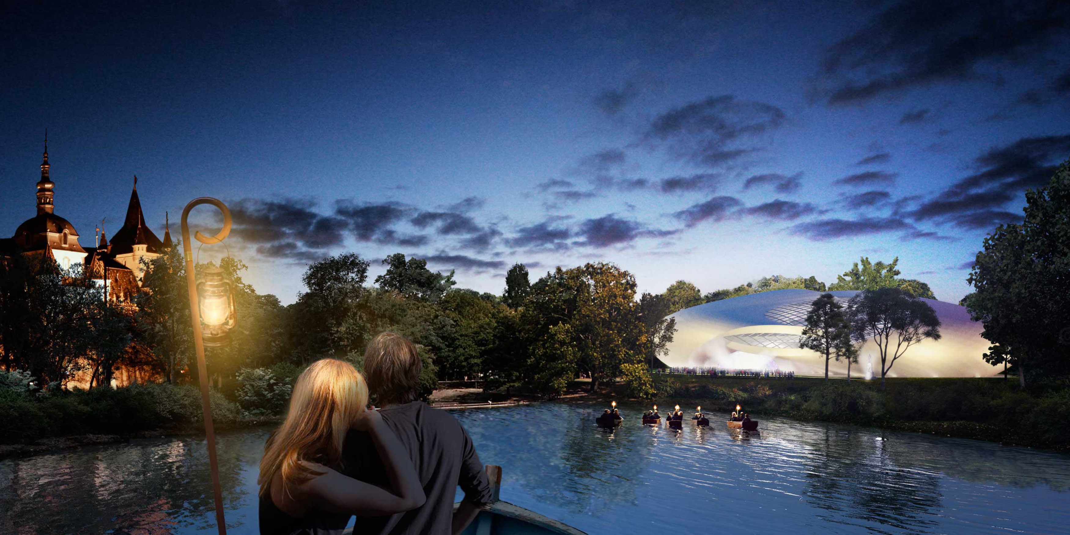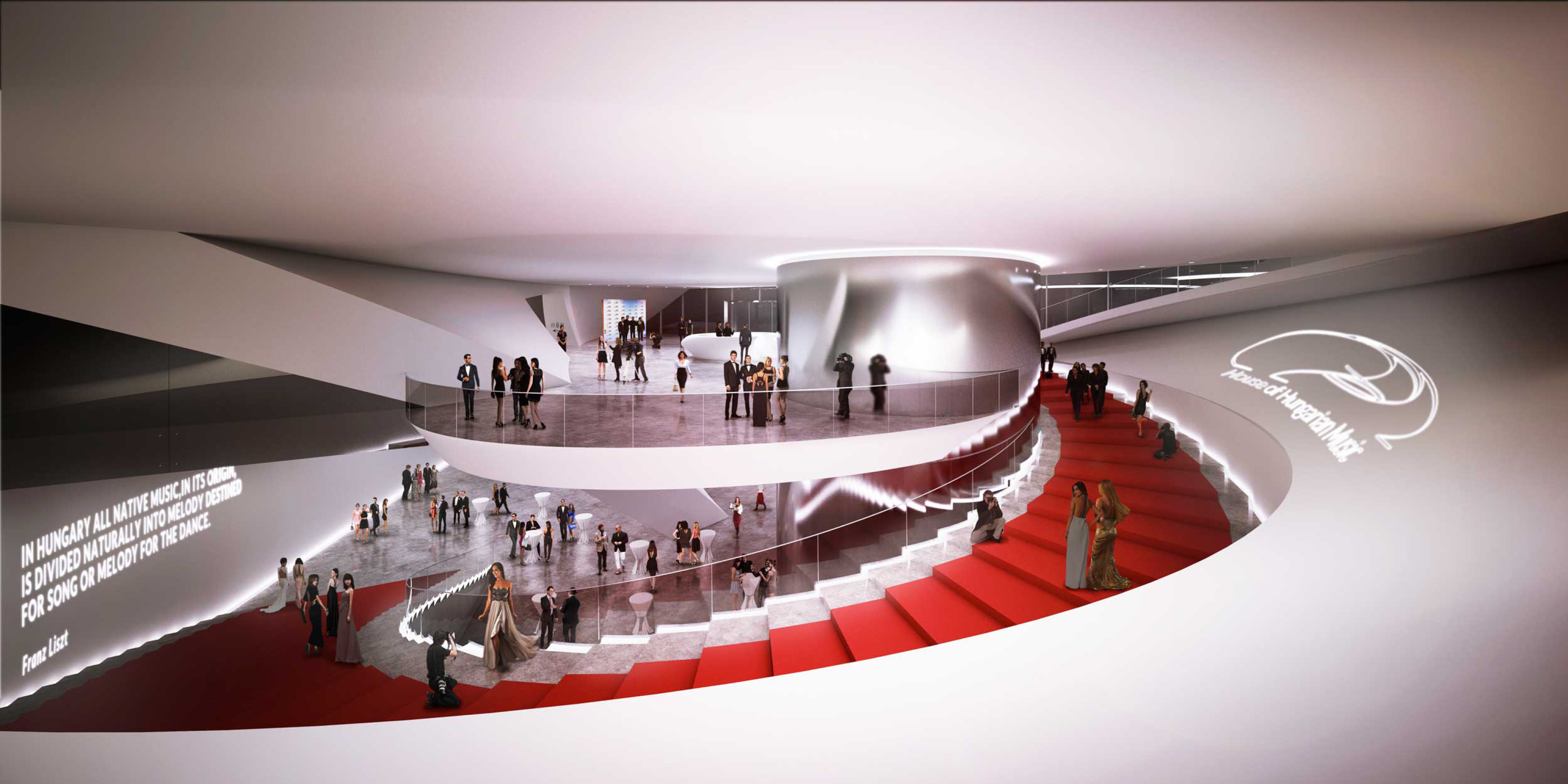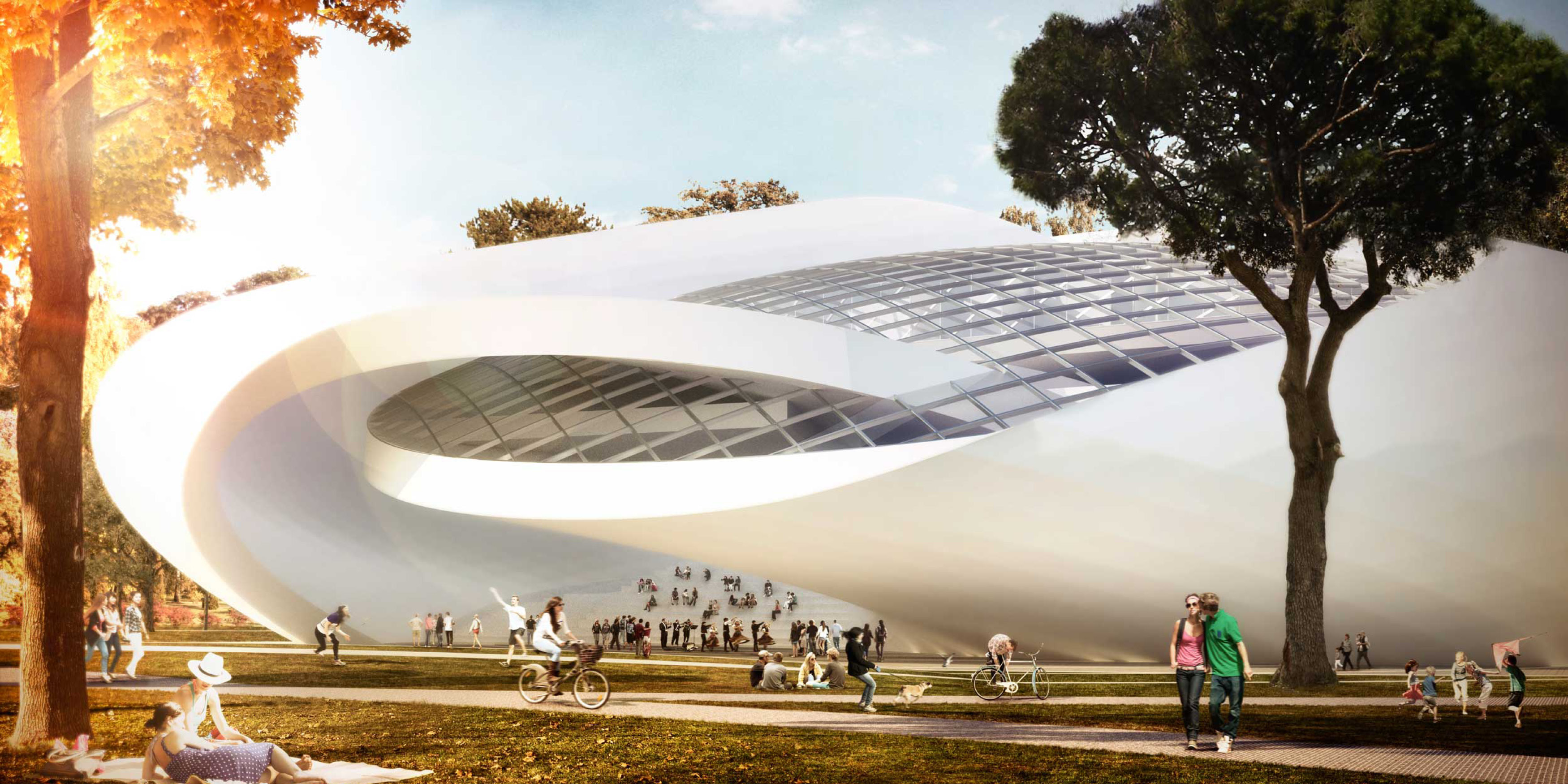 The unique location of the project, in the middle of the City Park and away from the urban context, requires a strong gesture as an answer: A building that lives from its own energy through its own beautiful design. Our concept grows like a flower in the middle of the park, making people curious about its form and its content. What inspired us the most, was one of the sentences in the tender: “…metaphorically should music be turned into a building in the context of the 21st century…”