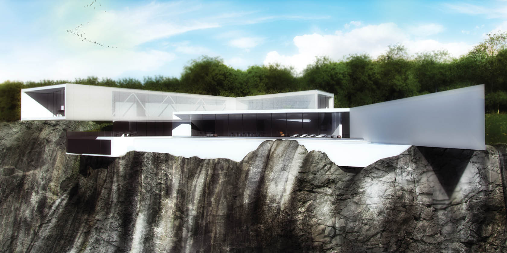 This project was commissioned to us as a study by a Russian entrepreneur who worked in several countries but liked to relax in on the Adriatic see. Because of his good relationship with Austrians he decided to stay and now he is located in Vienna. Beneath his economic success, he is a man with many interests, supporter of the fine arts, especially classical music and contemporary architecture, very athletic, and very interested in technical matters. But of course the most important part of his life is his family, so he tries to spend as much time as possible with his wife and his two children. Because of his interest in architecture he came across to some of our designs in magazines and internet. He was very interested in the project we did for the Gösta Serlachius Fine Arts Foundation in Mannta, Finlanand he contacted us with the purpose of developing something on the same architectural language. He was right away impressed with the way we merge conceptual ideas into an architectural design. After numerous talks about architectural theories and the exchange of several ideas and opinions, we were offered to create a study for a private mansion for him and his family.