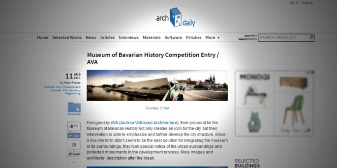 Our competition proposal for the new Museum of Bavarian history in Regenburg Germany has just been published on Archdaily the most visited architecture website.